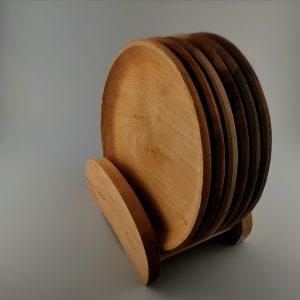Katashut Rustic Alder Wood Dining Plate - Medieval Style Plate Set Alder Wood - Dining Set - Dining Room Décor - Easy Cleaning & Lightweight for Dishes Snack, Dessert - Set of 6 with Stand 10"